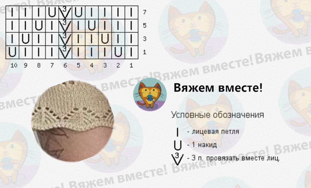 Напомню, что убавления, обозначенные галочкой, следует вязать с наклонов вправо, а стрелочкой с наклоном влево.