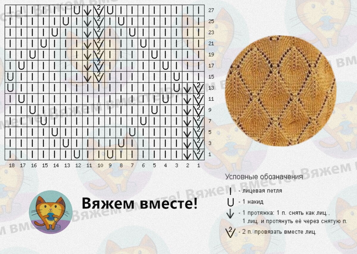 Так как на канале уже есть схема такого узора и даже его модификаций, повторно составлять схему не стала, а ссылкой на статью со схемой делюсь: