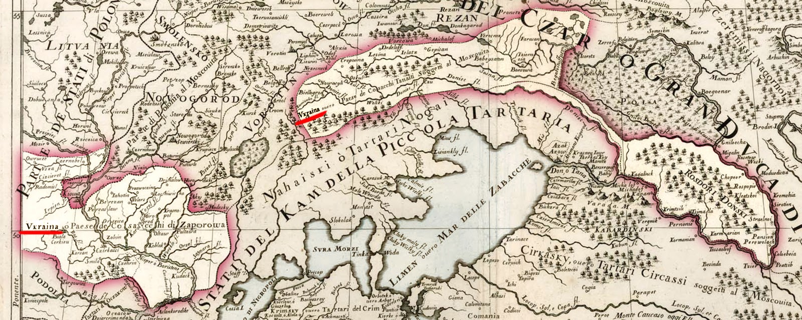 Обратите внимание на часть карты 1684 года "Tartaria D'Europa nesse Due Vkraine - Giacomo Giovanni Rossi". Да-да! Это украинские земли запорожских казаков и донских казаков 17 века, когда востоный сосед украинцев было княжество Московия. Россияне об этом не знают. Читать подробнее http://historyukrainian.blogspot.com/2015/05/blog-post_19.html