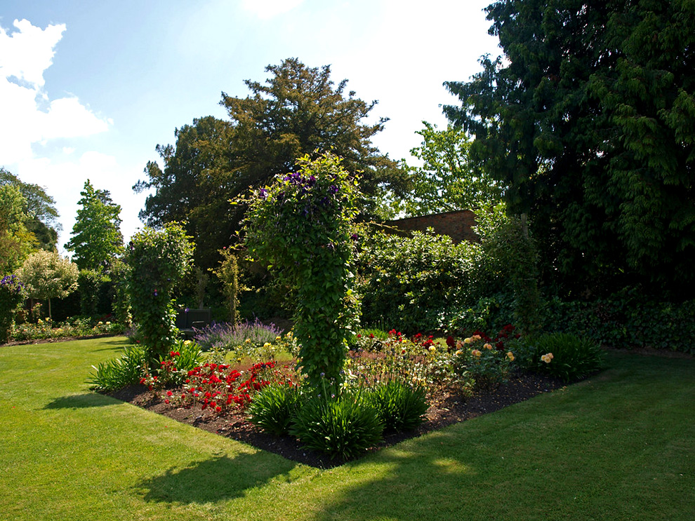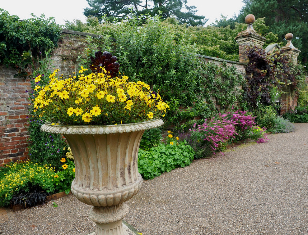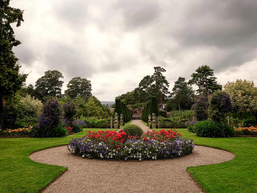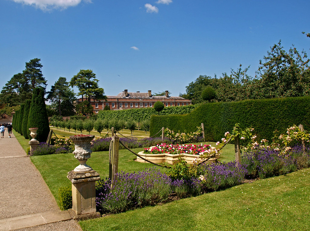 Обнесенный стеной сад в поместье Эрдиг - один из важнейших сохранившихся садов 18 века в Великобритании и,вероятно,самый большой.Внутри сада есть несколько отдельных зон,но самая большая из них расположена вдоль широкого канала,ведущего к дому.Этот канал окружен обширной зоной диких цветов,где произрастает множество видов,включая орхидеи.В саду также находится одна из самых длинных цветущих клумб,которые вы когда-либо видели.Здесь есть прекрасная розовая клумба,где розы вьются,переплетаясь с клематисами.Топиарные формы - характерная черта этого поместья,они бывают самых разных размеров.