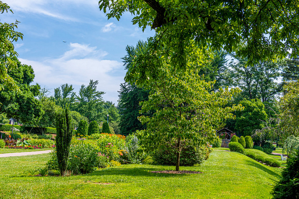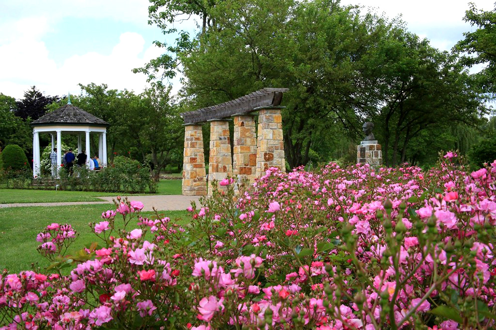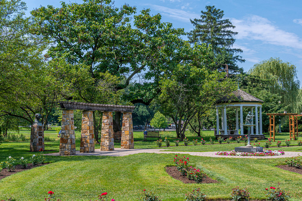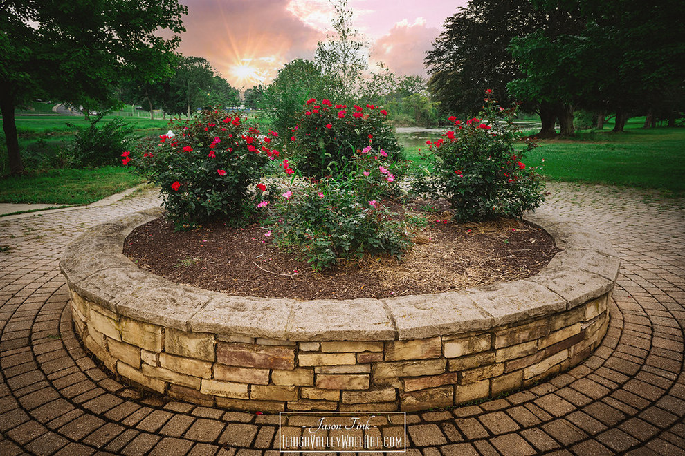 В 1920-х годах Малкольм У.Гросс,тогдашний мзр города Аллентауна,мечтал о создании парка в центре города,где горожане могли бы прогуливаться среди десятков сортов роз.Это привело к планированию Розового сада,завершенного в 1931 году и вновь открытого виюне 1947 года как Розарий имени Малкольма У.Гросса с бюстом мэра.Сейчас это очаровательный сад украшенный более чем 1200 розовыми кустами и пленительными цветочными композициями.