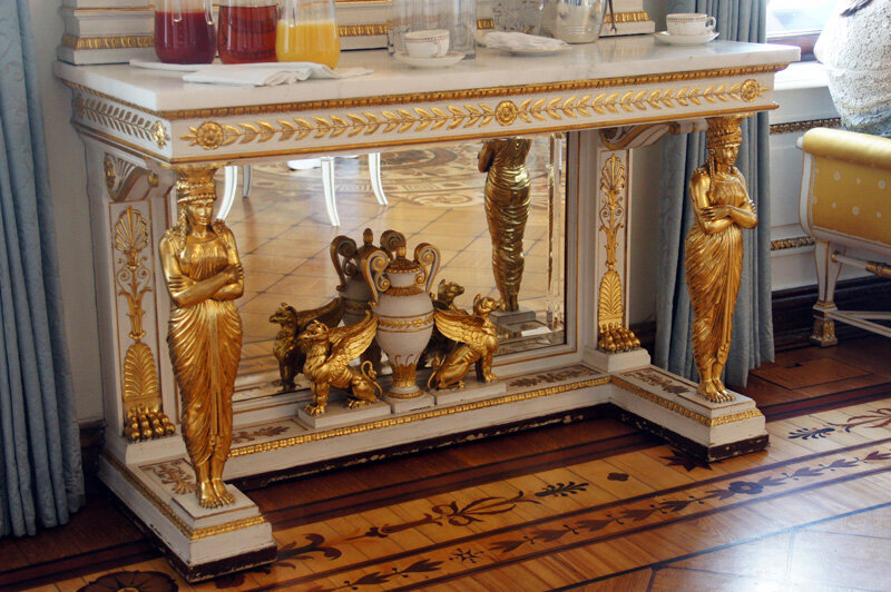 В то время Федор Осипович тяготел к готическим мотивам, что и сказалось на этой его работе. В помощники себе он пригласил известного французского живописца Франсуа Фламенга, который расписал потолки залов.
