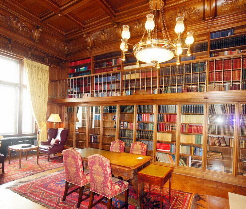 Здание в ренессансно-барочном стиле с двумя флигелями было выстроено в 1891-1893 годах. А прекрасные интерьеры, разработанные Шехтелем, сохранились до наших дней почти без изменений. Покажу несколько фото, позаимствованных из сетевых источников.