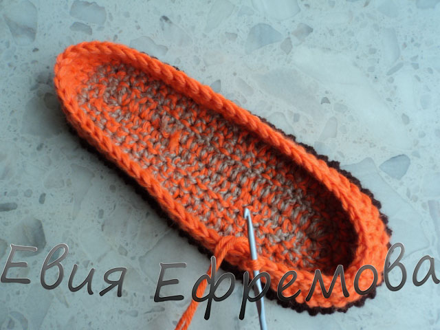 Заканчиваем третий ряд симметрично его началу с другой стороны тапочка.