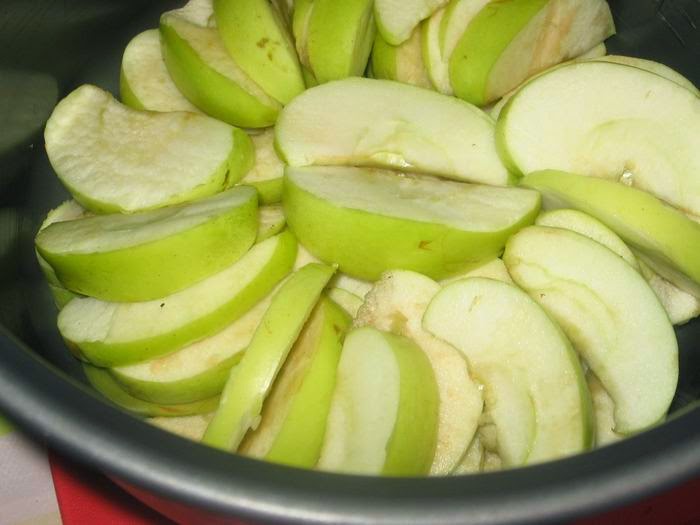Яблоки нарезать дольками, лучше использовать антоновские яблоки.