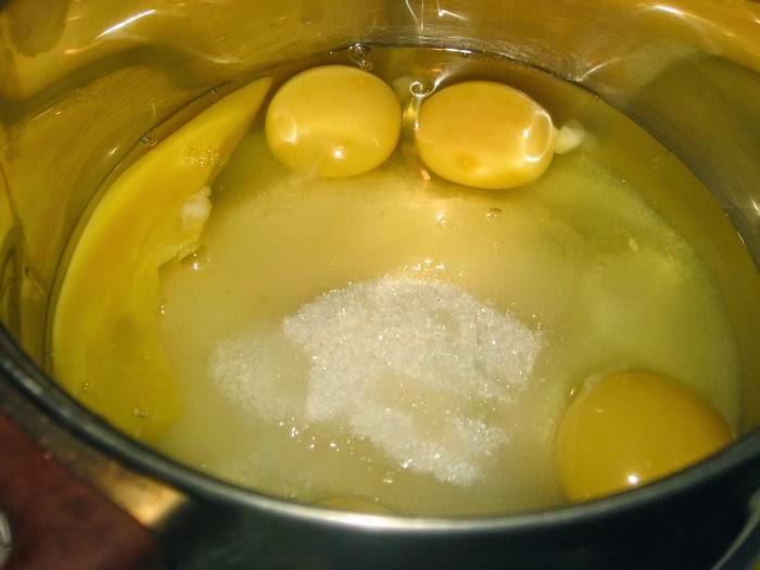 Яйца взбить с сахаром до полного растворения сахара. Взбивать минут 10.