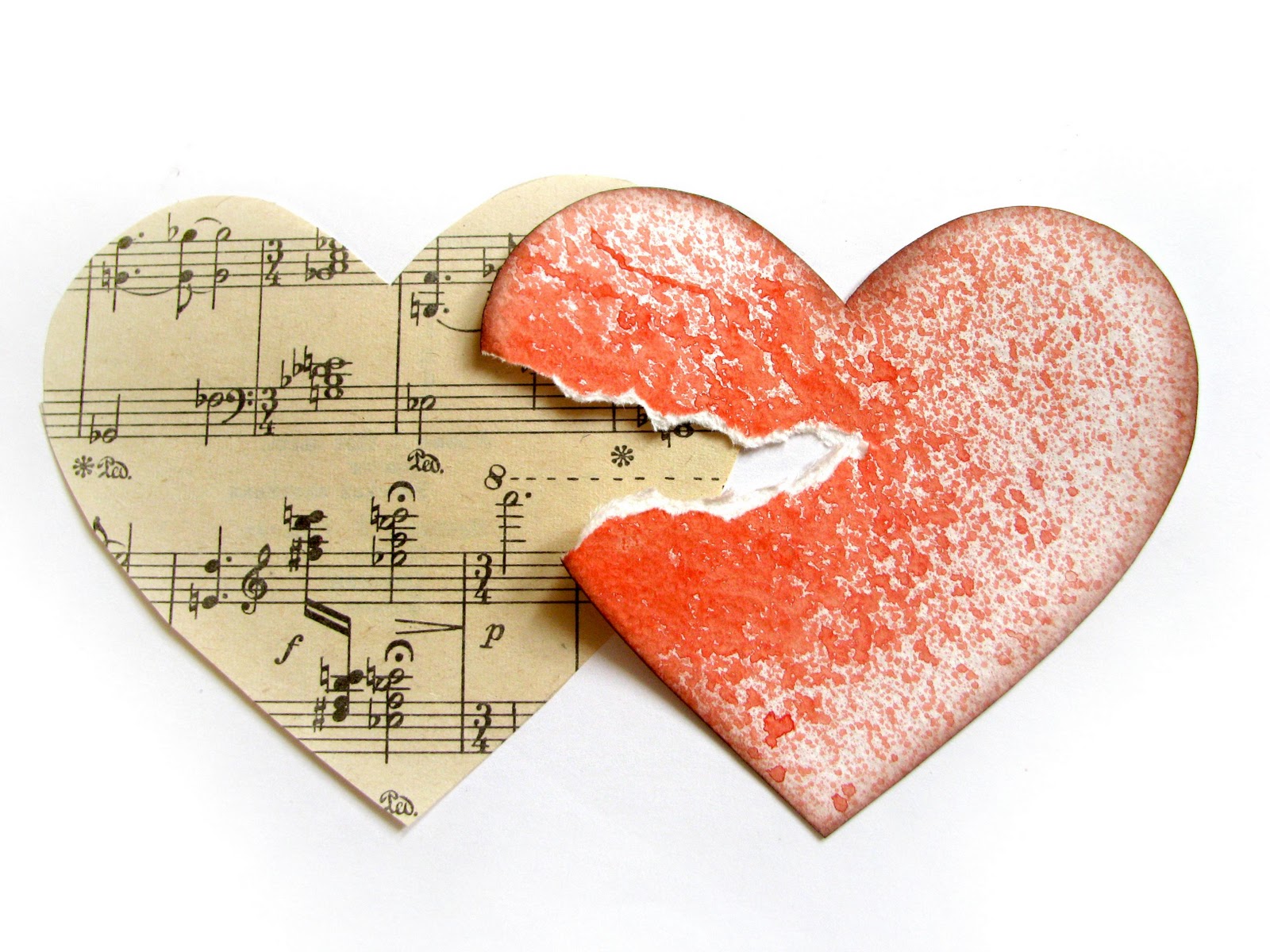 Вырезаем такое же сердце по размеру из любой другой бумаги с рисунком (у меня ноты).
