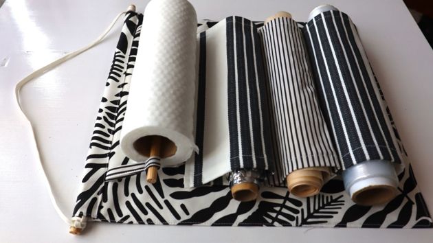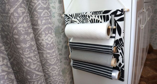 Не занимая лишнего пространства, рулоны удобно разместились на боковой стенке шкафа.
