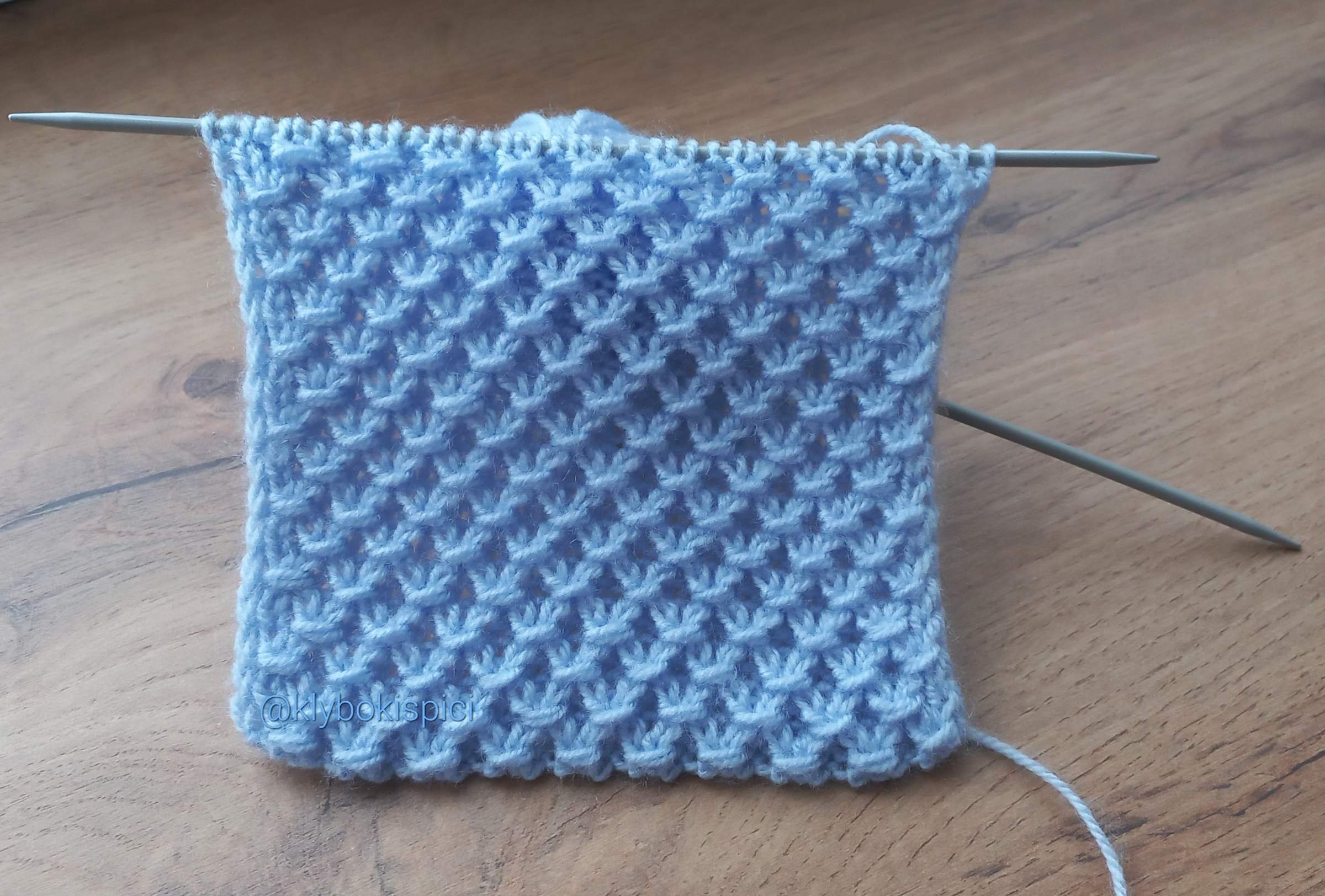 3-ий ряд: 1 лиц, 1 изн, *1 лиц, 1 изн, 1 лиц – обвить эти петли 2 раза, 1 изн* повторять от * до *. В конце ряда 1 лиц, 1 изн.