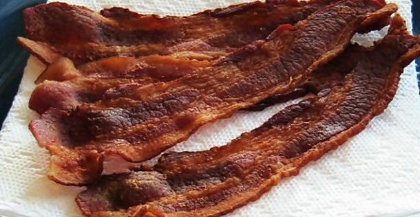 Приготовление бекона в микроволновке быстрее и лучше для здоровья. Поместите бумажные полотенца на тарелку и положите полоски бекона на полотенца. Также накройте их бумажными полотенцами, чтобы избежать брызг жира. Установите высокую температуру и готовьте в течение приблизительно 3 - 5 минут, и вы получите вкусные ломтики бекона без жира.