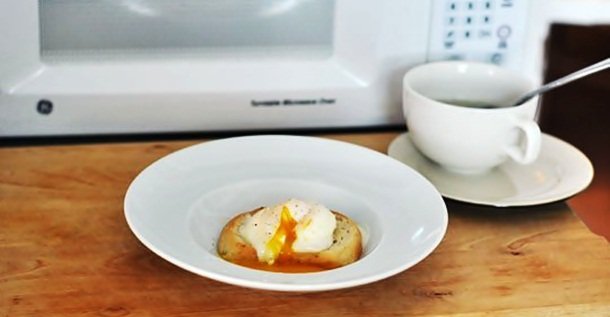 Вы можете приготовить идеальные яйца-пашот в микроволновке. Для этого сделайте трещину в яйцах и поместите их в миску для микроволновой печи вместе с кипящей водой и капелькой белого уксуса. Вставьте зубочистки в яичные желтки, прежде чем поместить их в микроволновку. Оберните миску пищевой плёнкой и готовьте на максимальной температуре в течение 30 секунд. Слегка поверните их и оставьте готовиться ещё на 20 секунд, и всё готово.