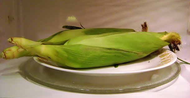 Приготовление отварной кукурузы в початках можно с лёгкостью осуществить в микроволновке. Срежьте нижнюю часть початка и поместите его в микроволновую печь. Нагревайте его на высокой температуре в течение приблизительно 30 секунд. После того, как закончите, возьмите верхний конец початка. Встряхните его немного, и вы заметите, что кукуруза с лёгкостью выскальзывает из шелухи.