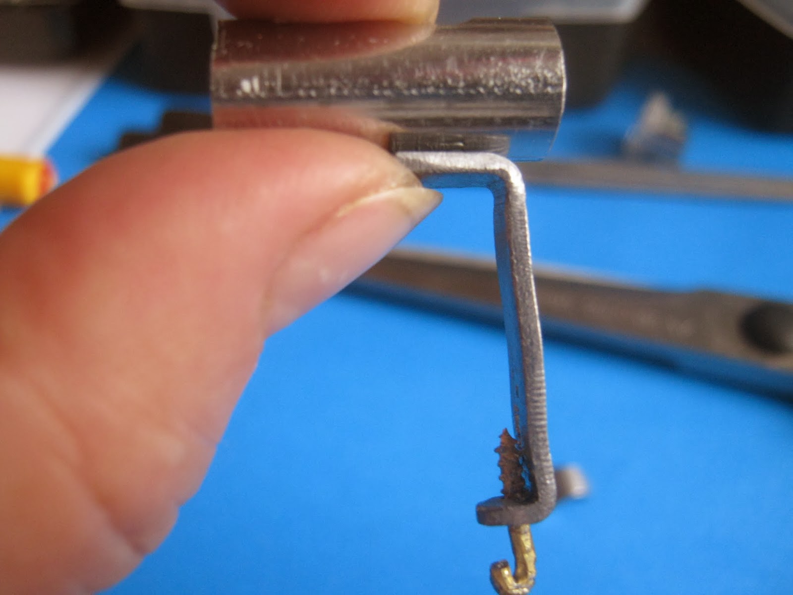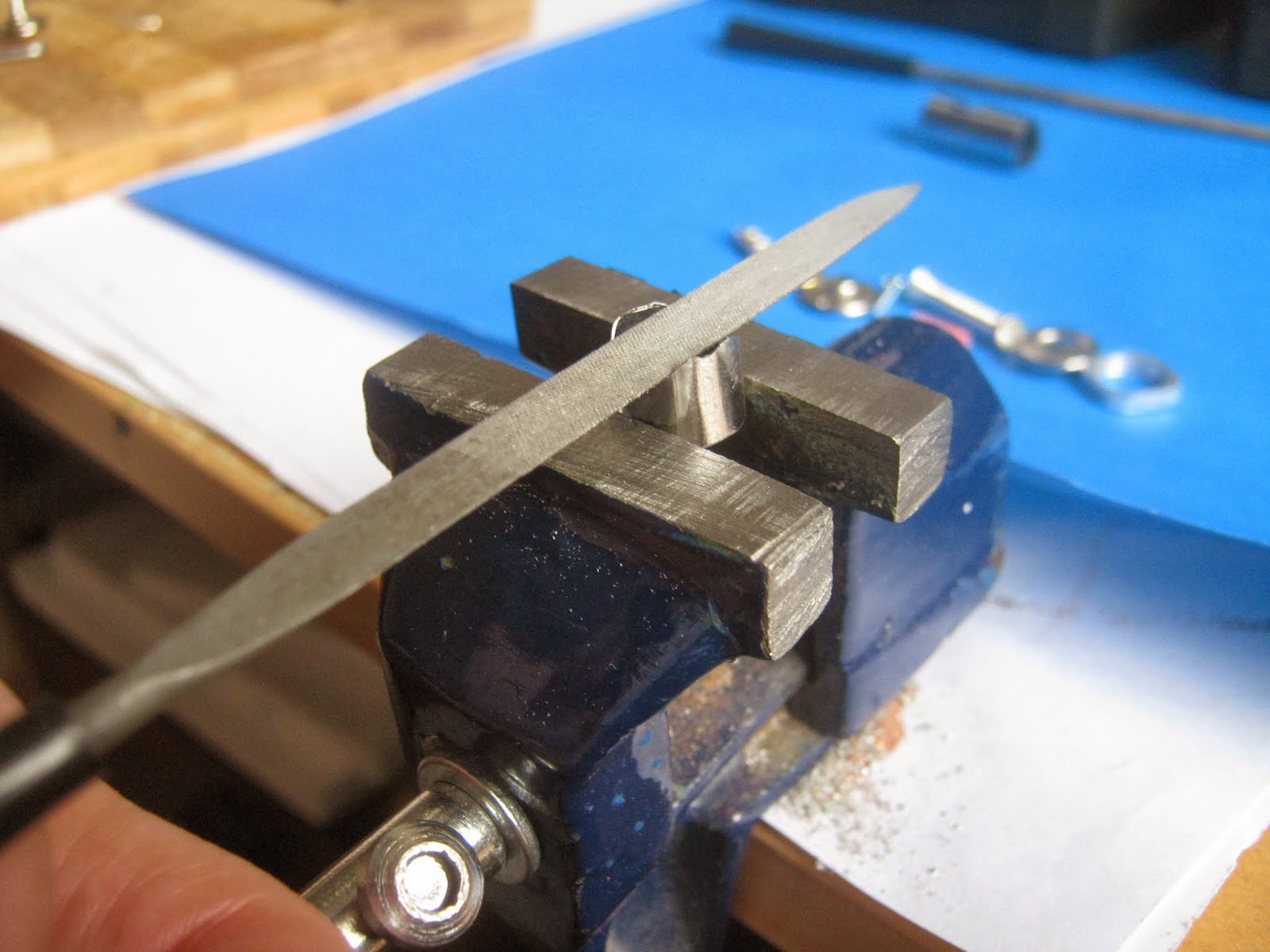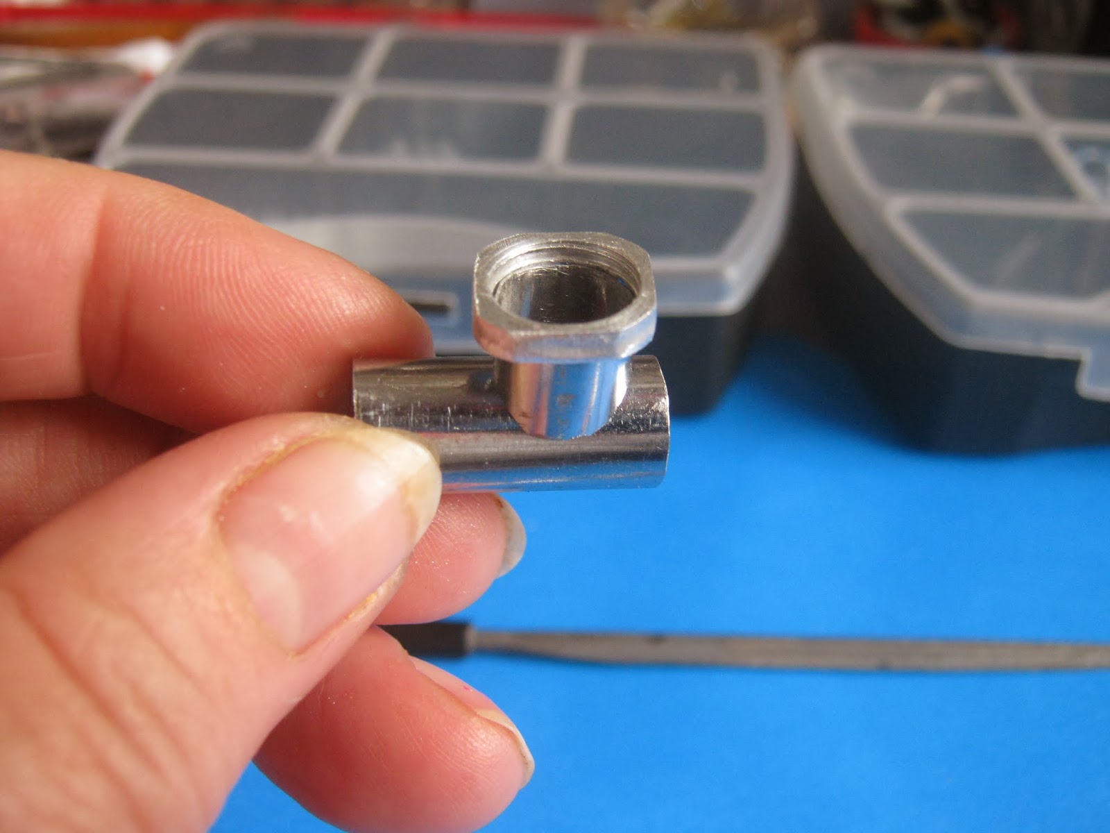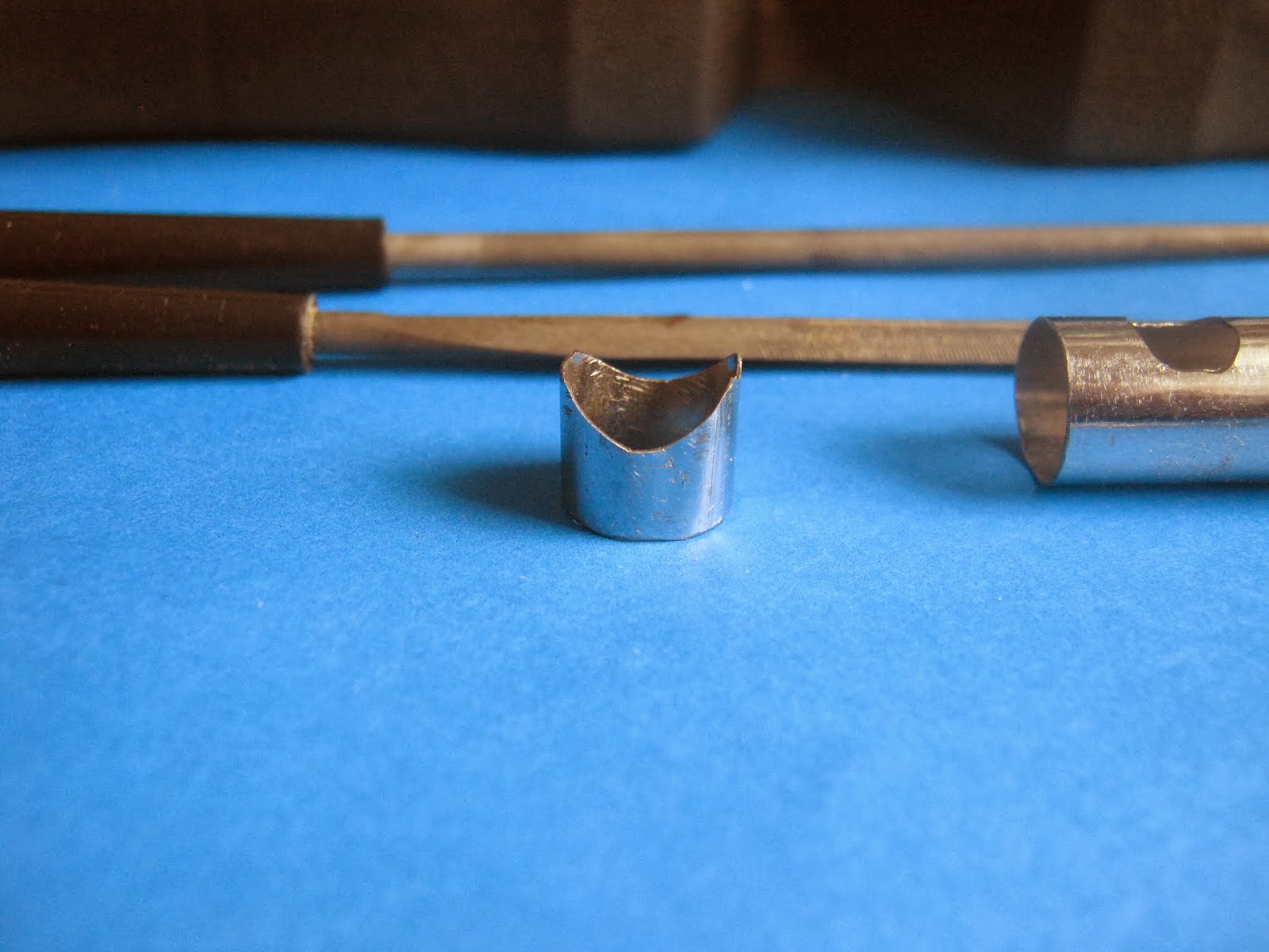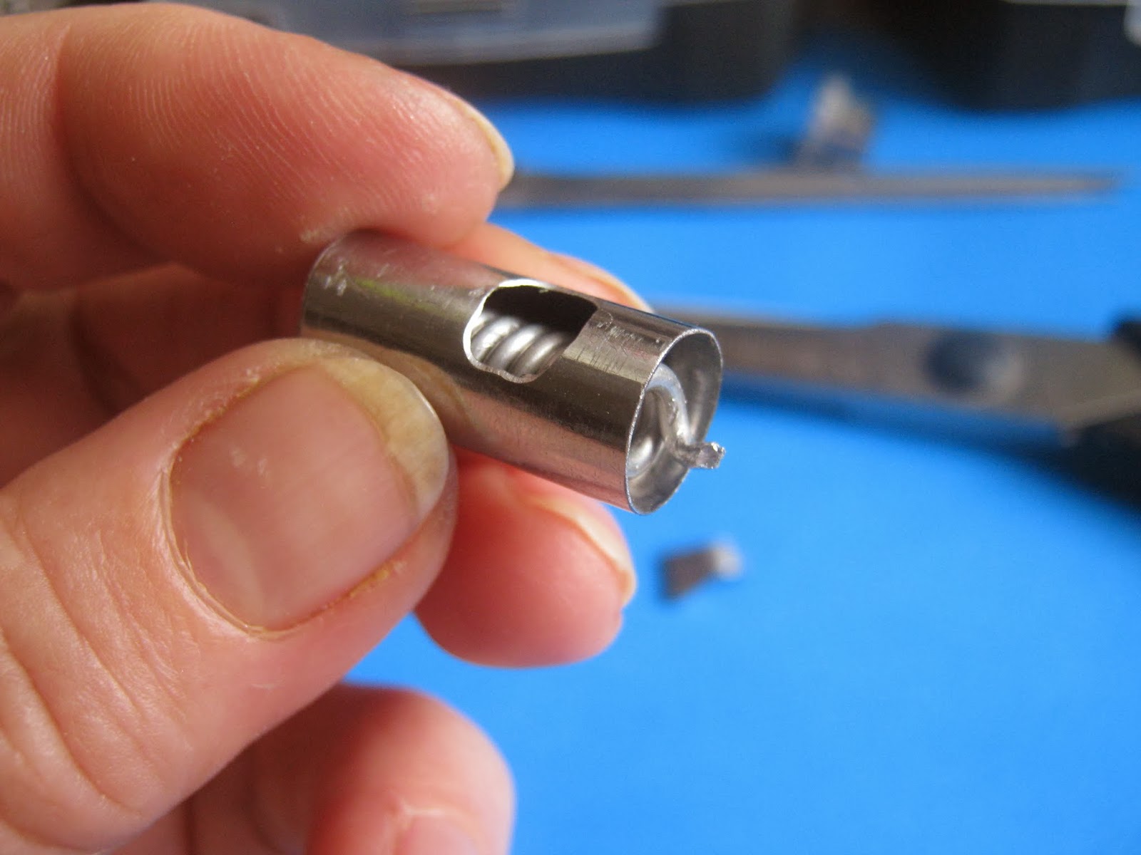 В длинной части трубки, чтобы просверлить отверстие немного меньше płaszczymy и Opiłowujemy ногти в форме бритвы