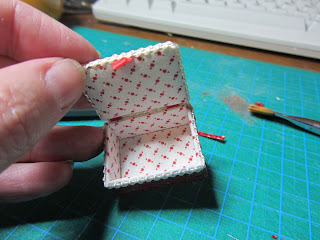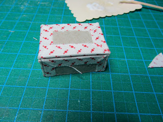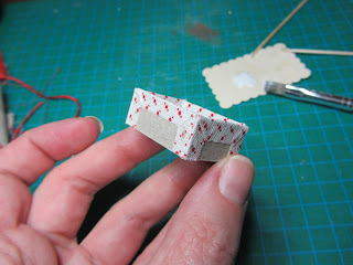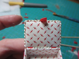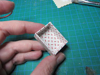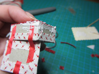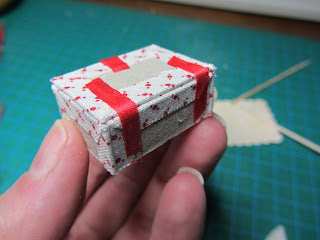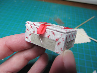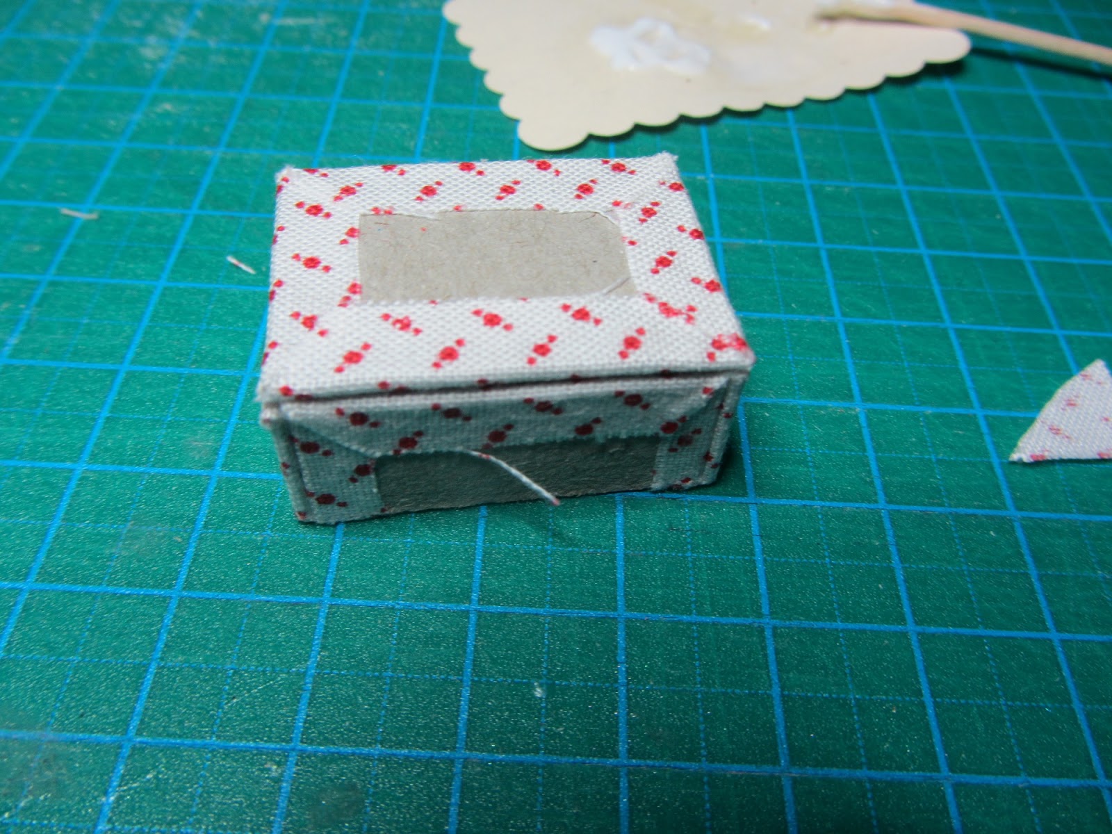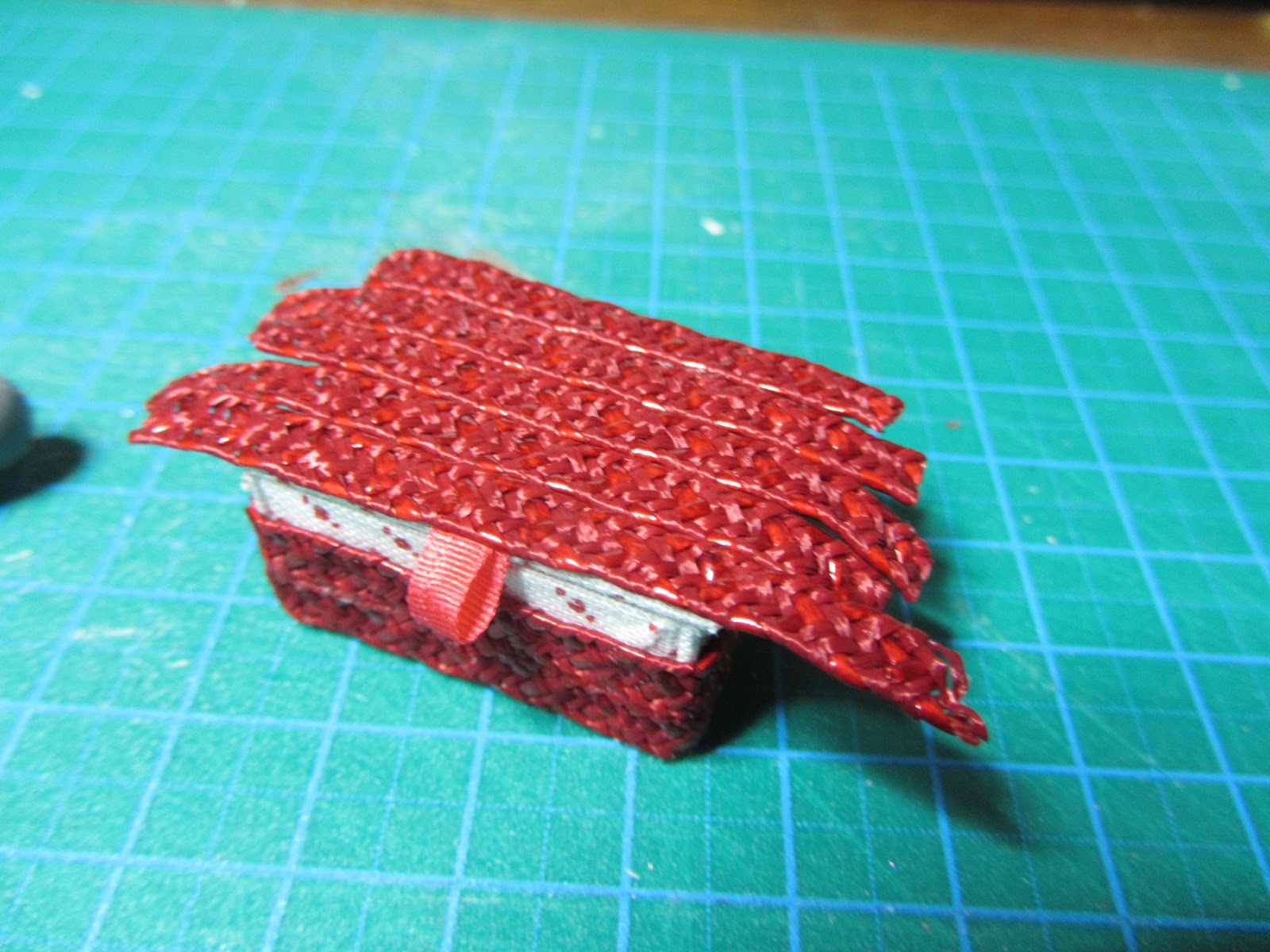 Поместите крышку. Шелковой лентой в качестве шарнира на крышке и задней части клея.