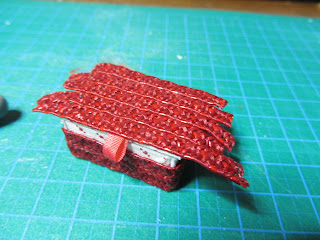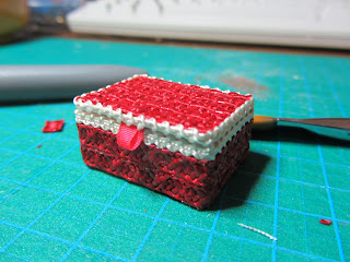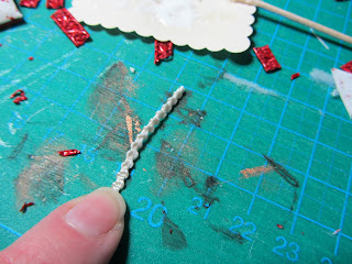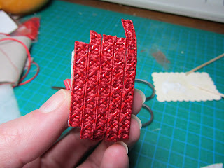Теперь крышка по-прежнему обшиты тесьмой. Учитывая кос с клеем, посыпать и наклеить на краю крышки.