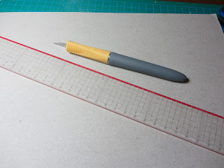 Корпус выполнен толщиной 1 мм серого картона. Здесь я использовал заднюю часть правовой колодки. Приспособленное для деталей с резаком и линейкой. Параллельное расположение не нужно подписывать с карандашом, но может начать сразу же.