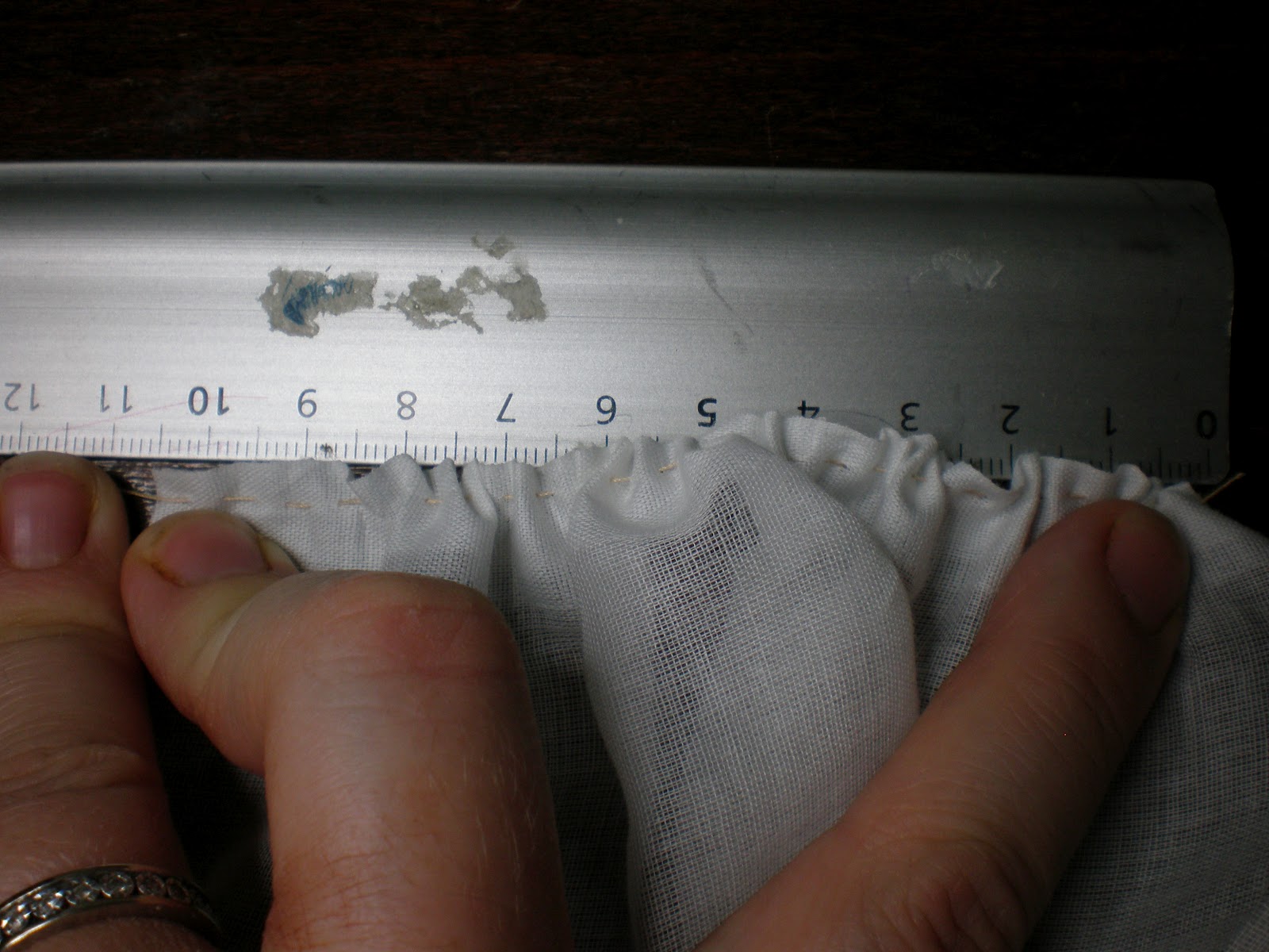 Соберите всю ткань, не волнуйтесь, если стежки не одинаковые, большинство тканей, естественно, не висят прямо с равномерными складками.