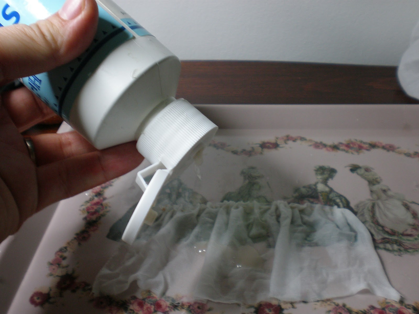 4) Загуститель для ткани. Смесь ПВА и воды 1:1. Если вы не использовали его раньше, пожалуйста, протестируйте на маленьком кусочке вашей ткани, или это может закончиться катастрофой!
