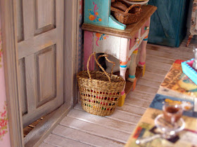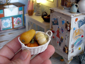 Белый стол под окном находится от Minis Modern . Белая корзина сделана Камилла Dlugowlska из MiniaturesMad. , Тыквы внутри находятся от P-Клей