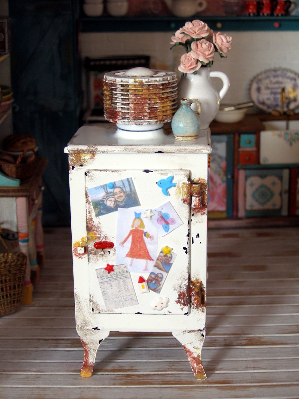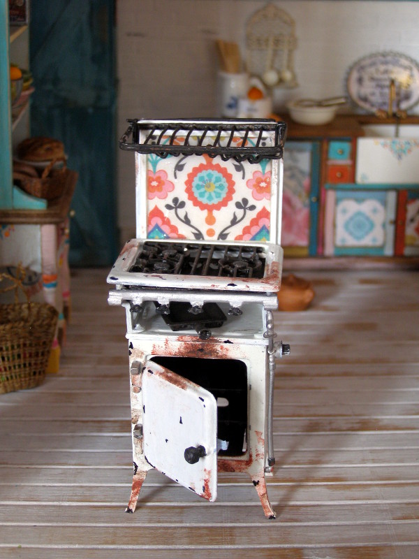 На кухне газ из 40 -х годов представляет собой комплект из Phoenix моделей , которые я купил в мировой миниатюрах , как и в 1930 - х холодильник.