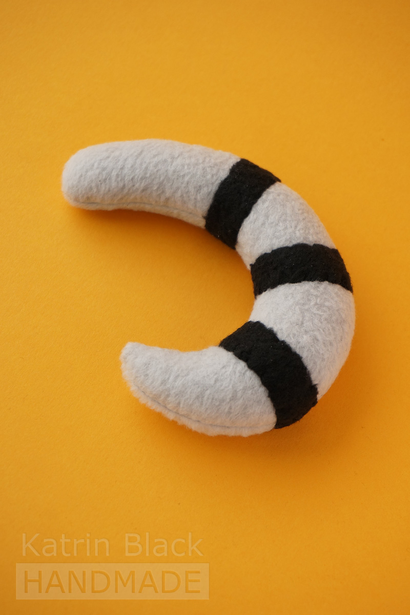 15. Вырезаем несколько полосок чёрного цвета и пришиваем их к хвосту через край.