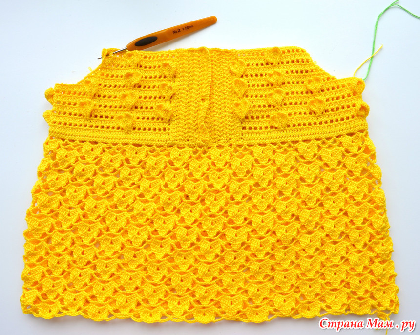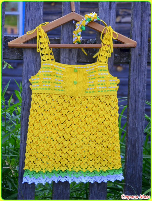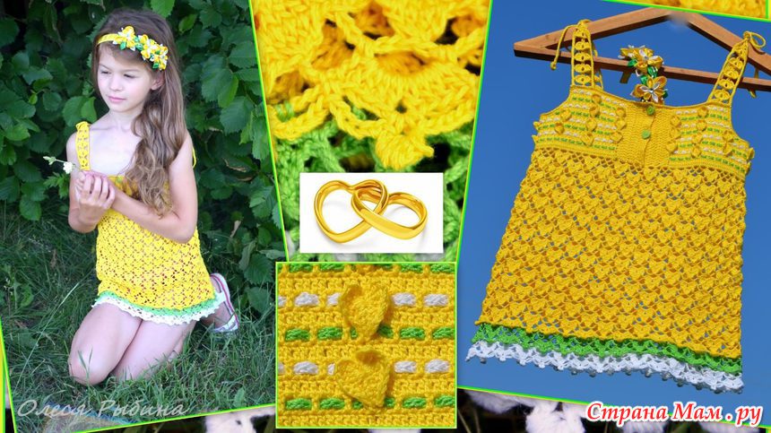 топ GOLD HEARTS, ЗОЛОТЫЕ СЕРДЦА на 7-8 лет. Решено было использовать разные узоры сердец для кокетки, бретелей и основного полотна (результатом почти довольна