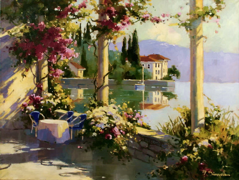 Картины, написанные маслом, - наполненные светом, словно написаны не яркими, чистыми красками, а сформированы разноцветными лучами. Уголки Тосканы, Прованса, Италии - радостные, солнечные, полные теней и полуденных бликов.