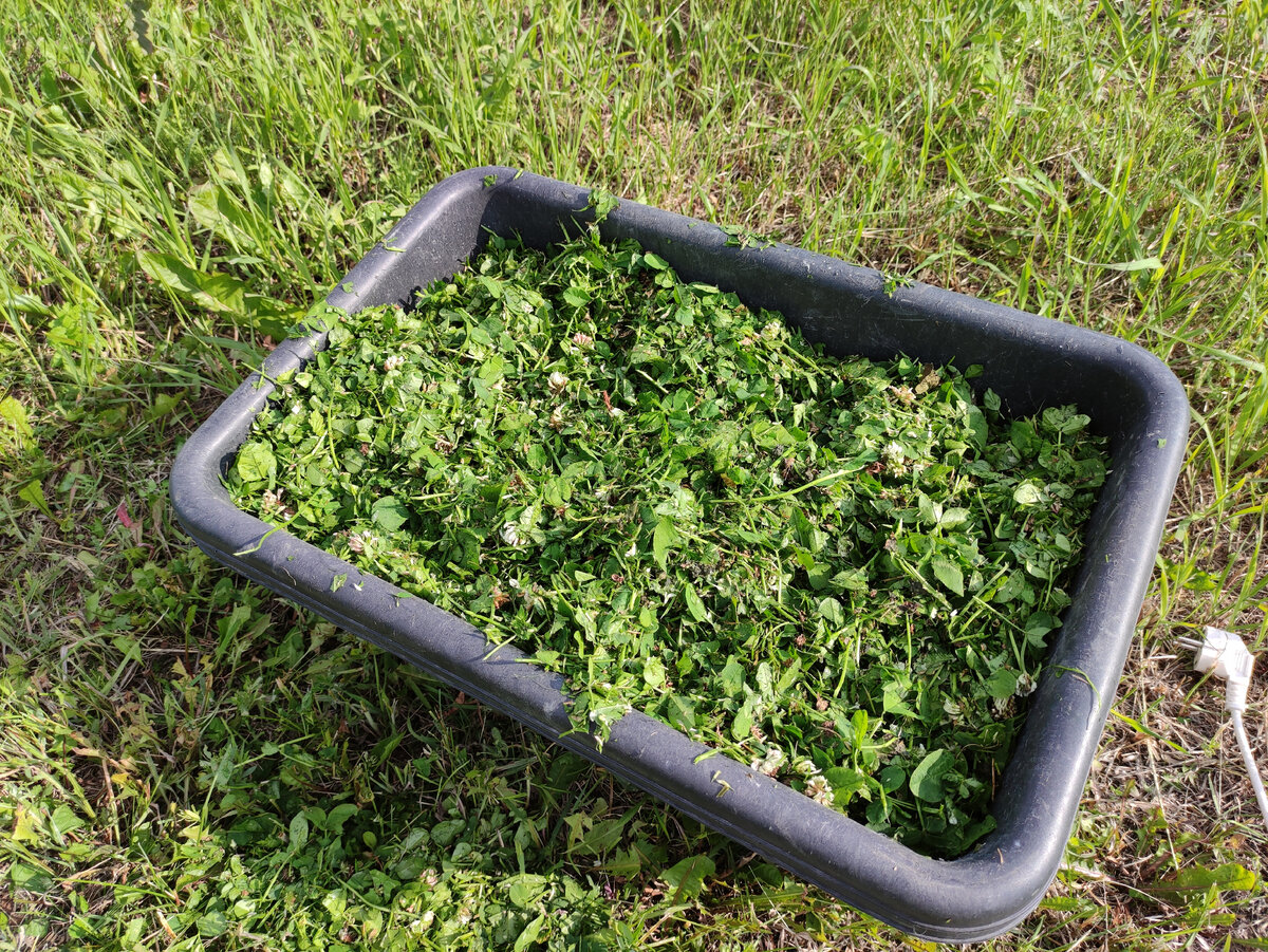 На солнце клевер начал разогреваться, запустилось прение (или ферментация). После этого клевер был рассыпан толстым слоем на грядки.