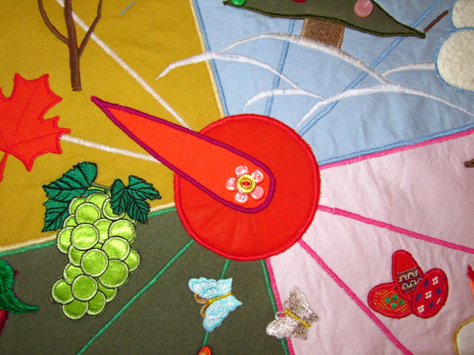 Идея была такова: 12 месяцев в году и 12 часов на циферблате. Так не терпелось выложить свою работу, что не дождалась пока пришью петли для крепления.)))