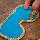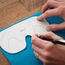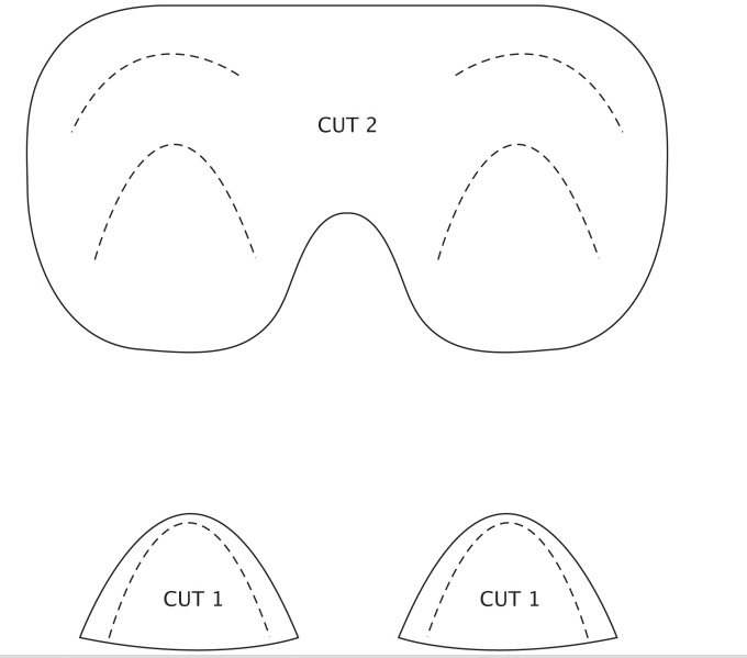 Шаг 3. Теперь формируем «подушечку» для того, чтоб свет не попадал в глаза со стороны носа и рта. Для этого прострачиваем нашу масочку по отмеченной на выкройке линии. И заполняем получившийся кармашек наполнителем.