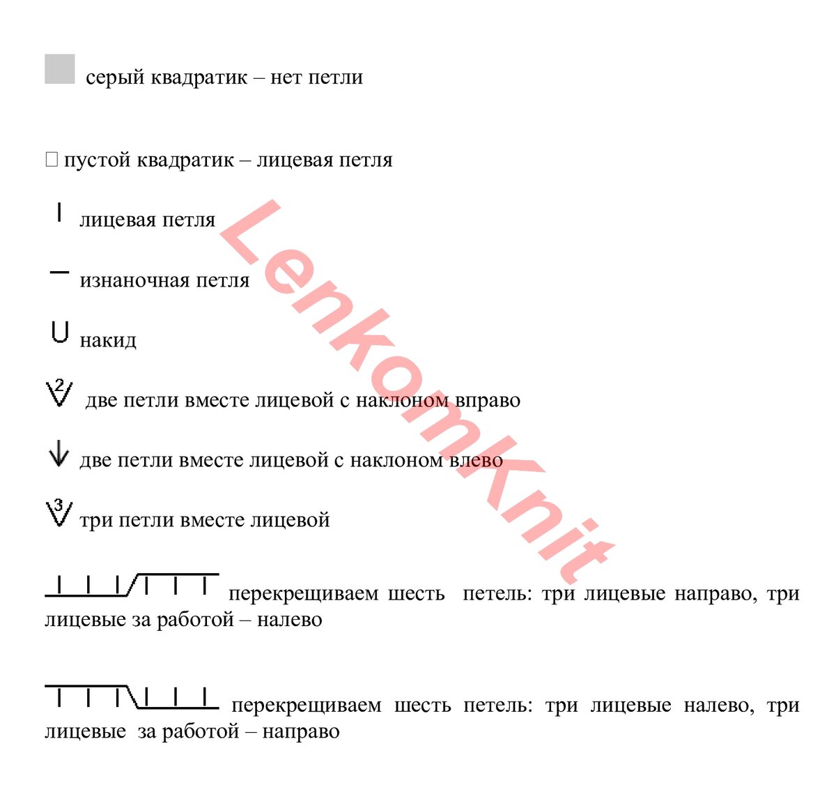 В розовом свитере очень интересный порядок прибавления и убавления петель. Это - схема узора для рукавов. Она составлена для лицевых рядов, изнаночные вяжем по рисунку. На схеме видно, что прибавление петель идет накидами по центру, где вяжем веточку. С каждой стороны делаются по два накида и один раз провязываются вместе две петли. А вторые две петли провязываются вместе чуть дальше справа и слева, образуя дорожки с тремя изнаночными в центре.