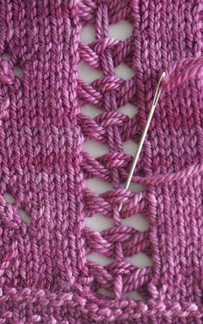 Вот такую симпатичную мережку она предлагает сделать на основе распущенных петель лицевой глади.