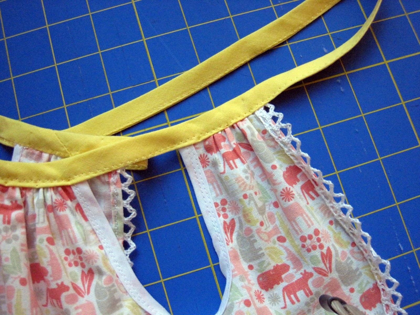 И, наконец, вы можете добавить еще несколько отделок в верхней части платья, прямо под смещения ленты.