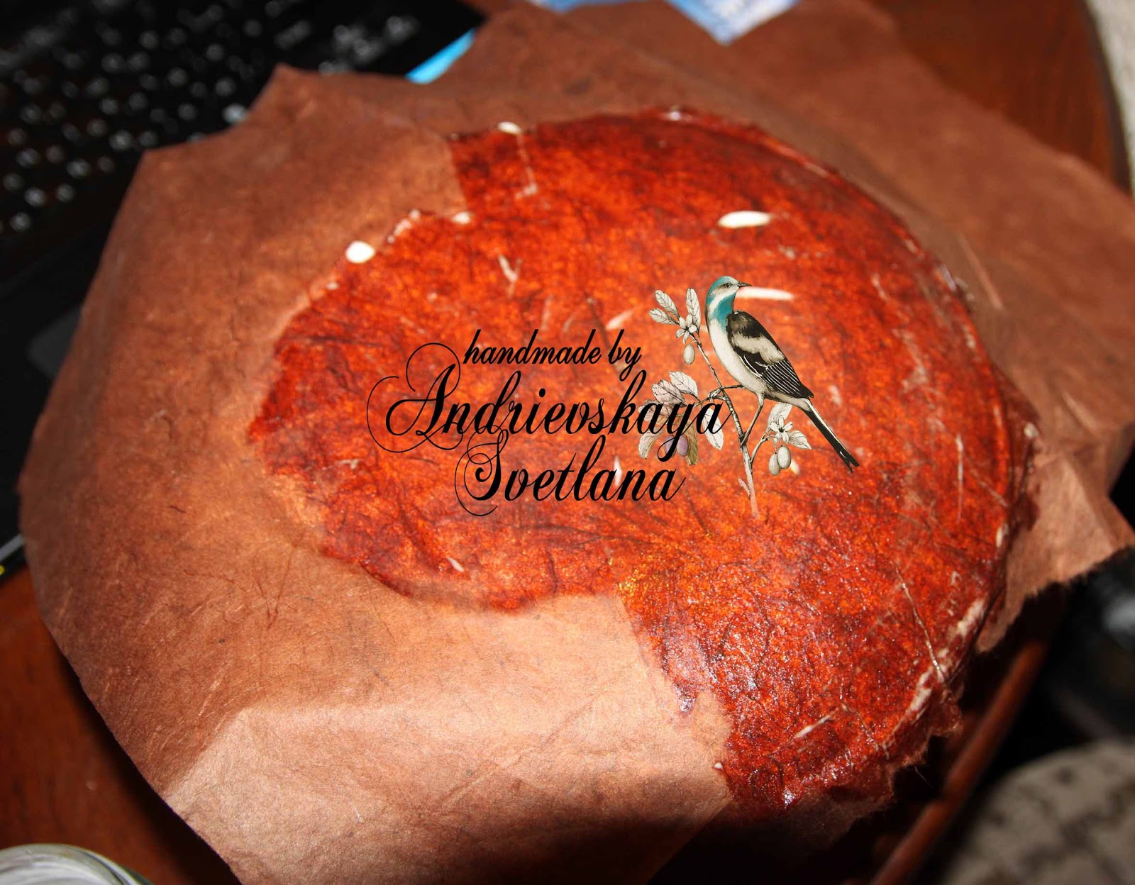 13. После высыхания наклеиваем однотонную рисовую бумагу. Задник тоже должен быть красивымJ