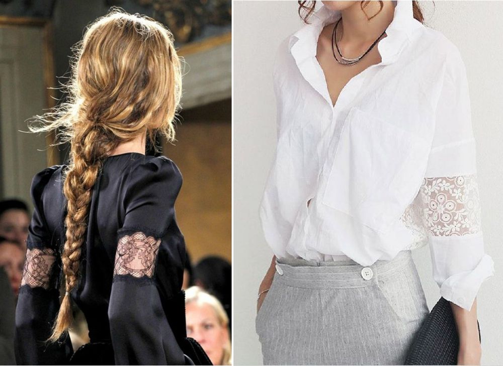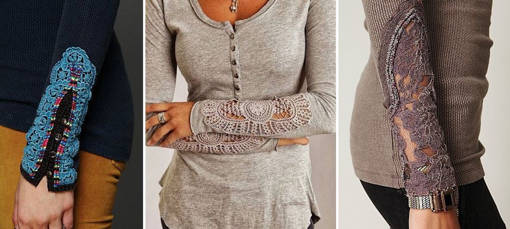 В случае прорех, разрезов на рукавах можно сделать фигурные вставки из кружева: