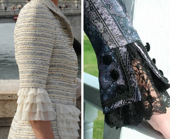 Безусловно, один из популярнейших вариантов преображения рукавов — это фантазии на тему манжет. Манжеты могут быть пришиты к рукаву или просто поддеты под него: