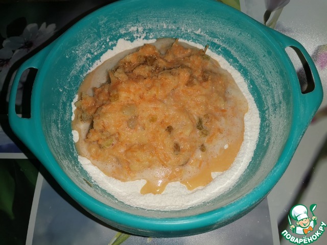 Соединить обе смеси: овощную и мучную, снова перемешать.