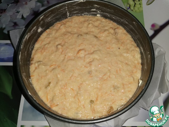 Нежный и солнечный пирог с яркими рыжими вкраплениями моркови и сладкими вспышками изюма. Простой пирог: влажный,вкусный, ароматный.