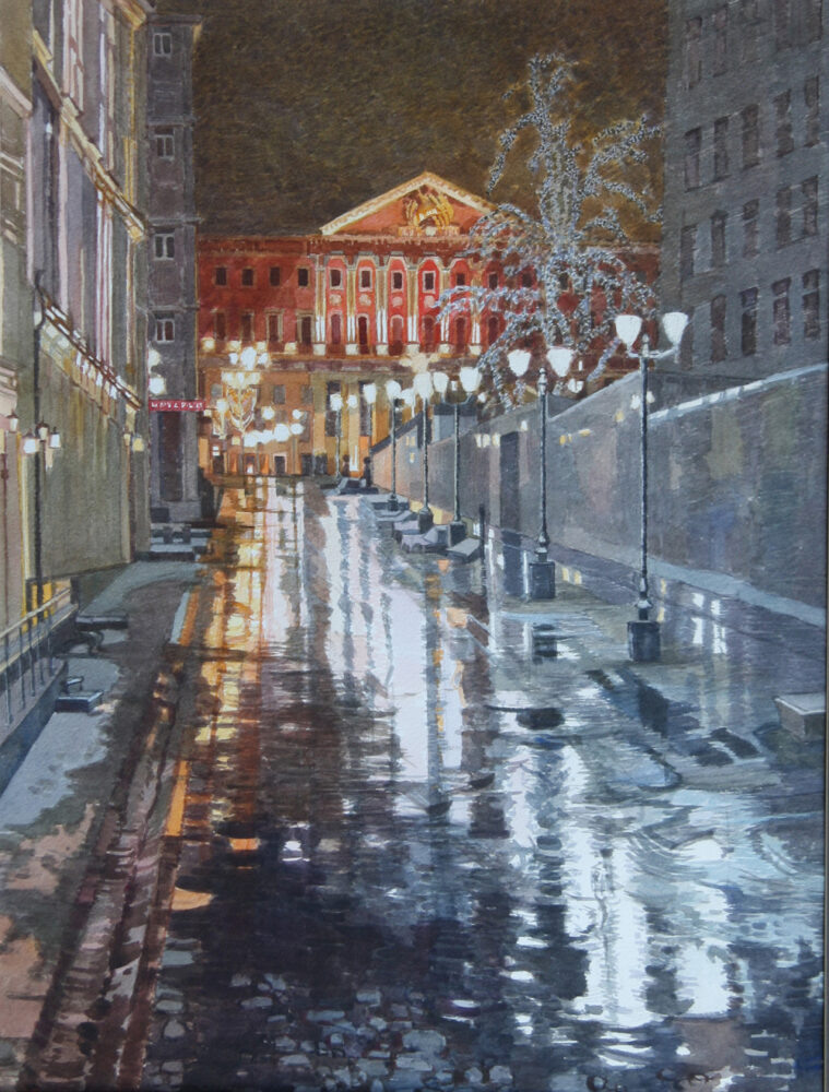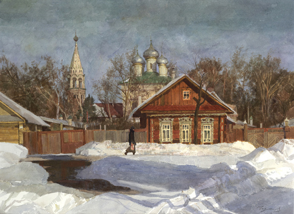 Художница Татьяна Чумакова-Кузнецова работает в технике многослойной акварельной живописи. Её картины словно наполнены воздухом и светом - тонкие цветовые переходы создают лирический образ, который заставляет зрителя остановиться и задуматься.