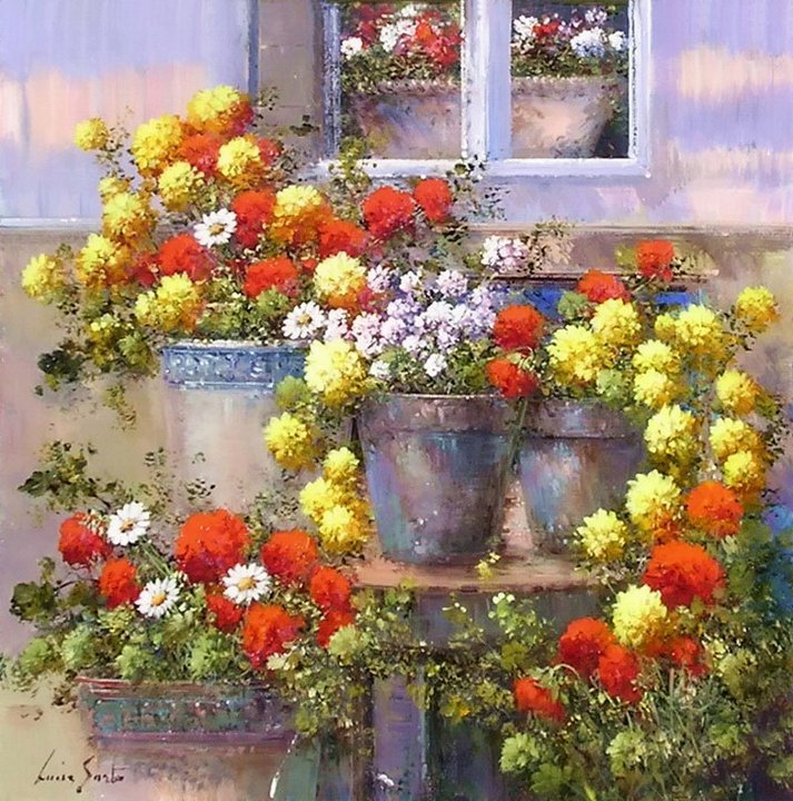 Люсия Сарто пишет в разных жанрах : пейзажи, натюрморты, портреты жанровая живопись ... Но, особое место в её творчестве занимает цветочная тема...