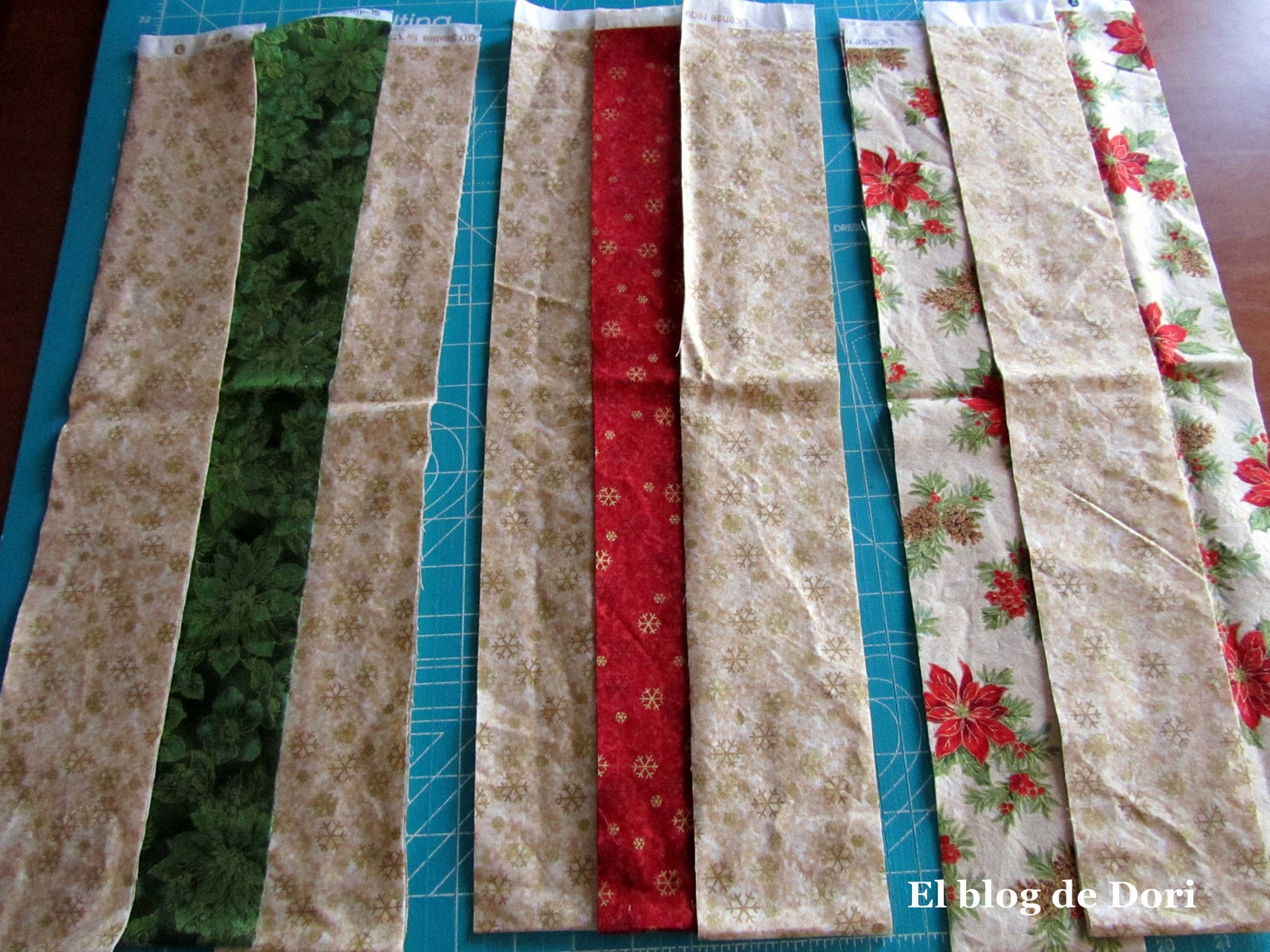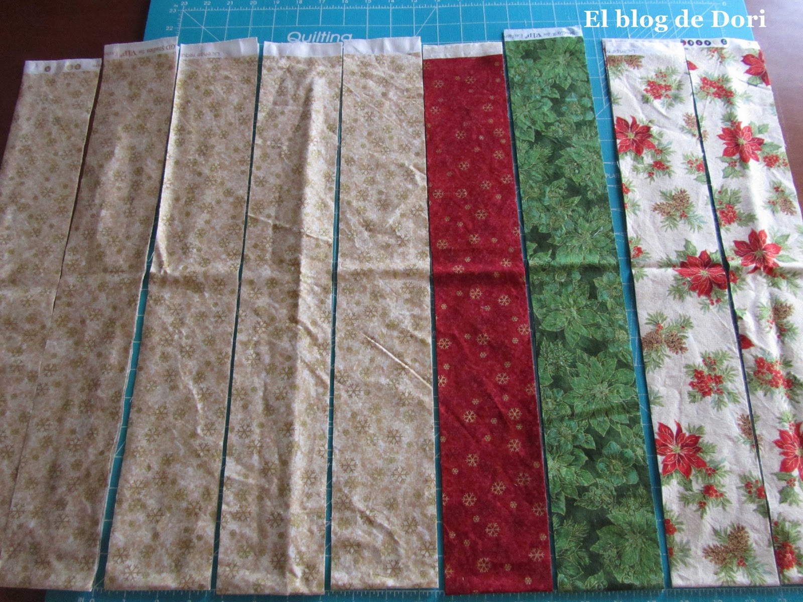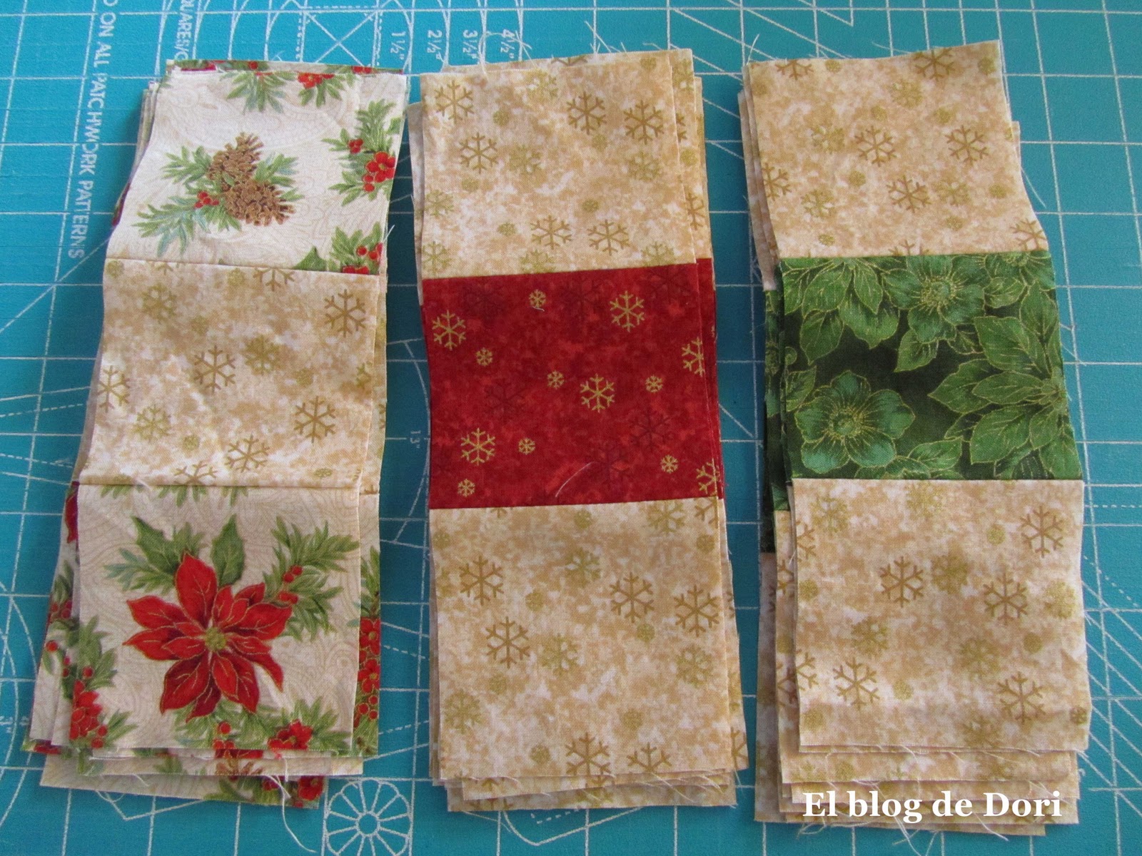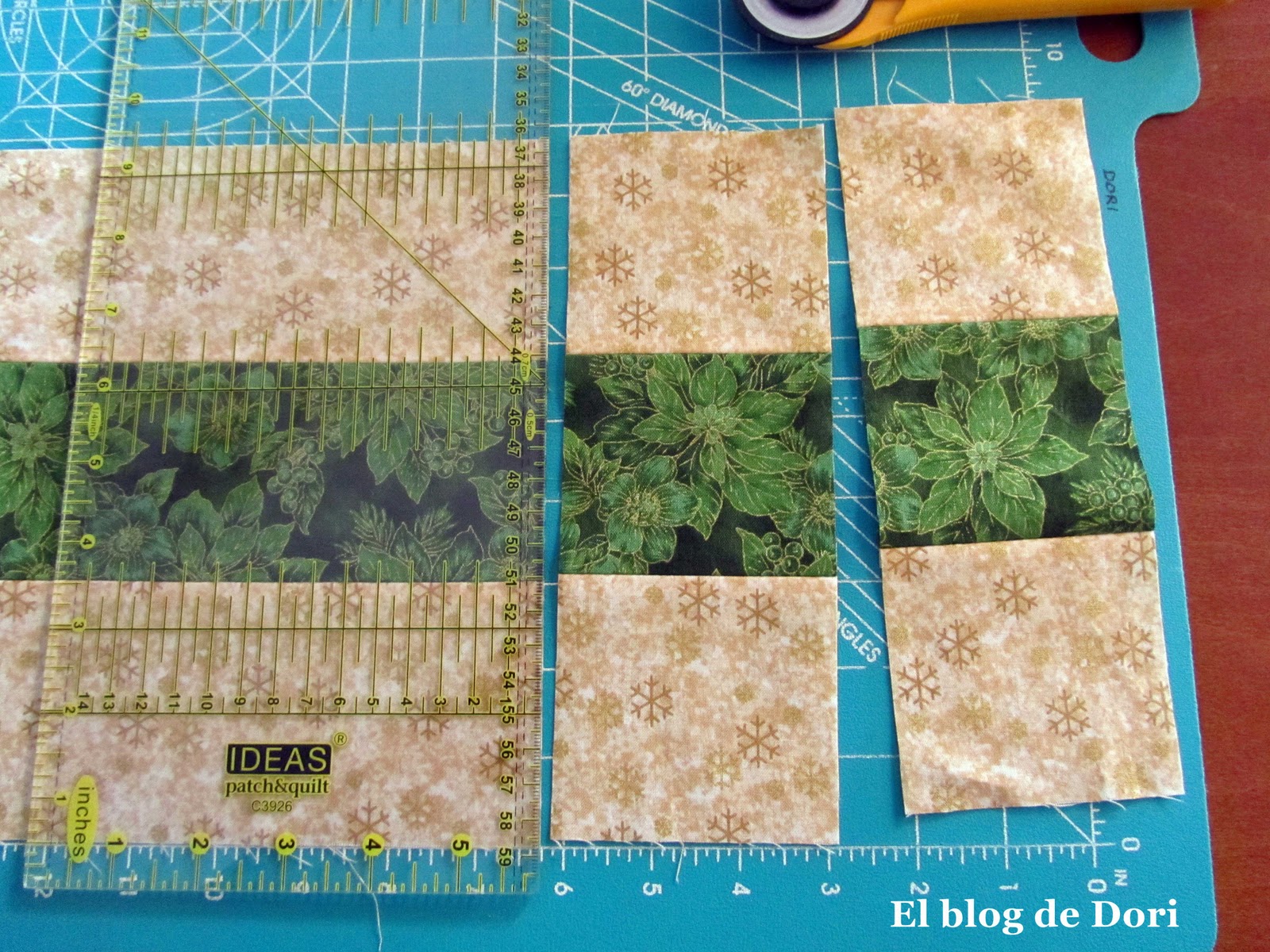 De las nuevas tiras combinadas que se han formado, he vuelto a cortar de nuevo a 3 1/4" de esta forma