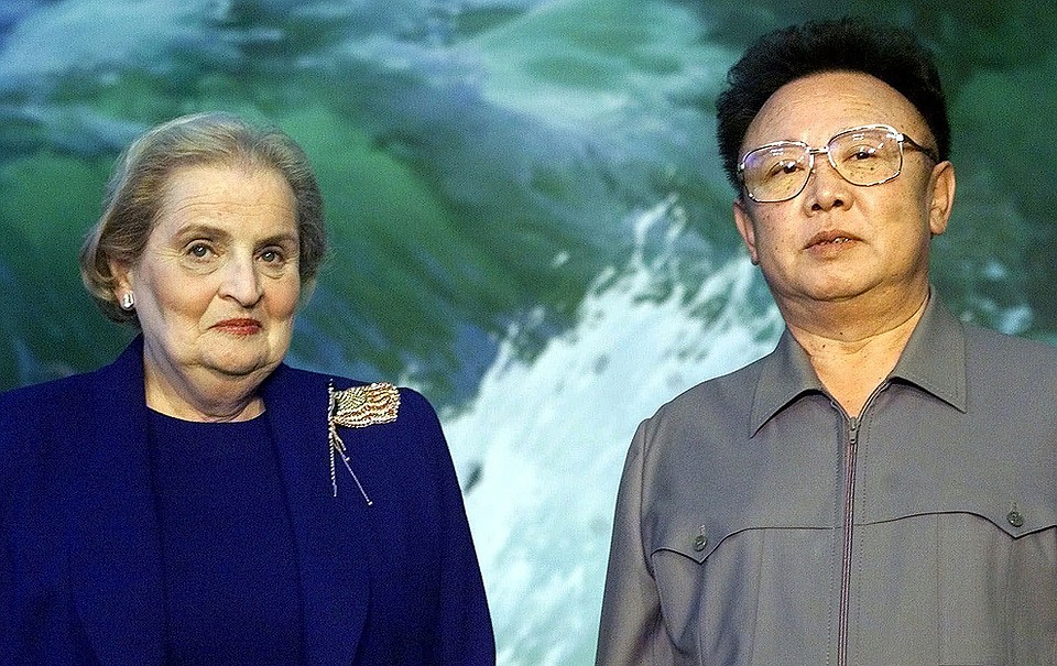 На встречу с Ким Чен Иром Мадлен Олбрайт явилась с роскошной большой брошью в виде флага Соединенных Штатов Америки.