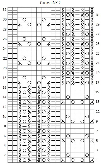 Основной узор: вязать согласно схеме № 2