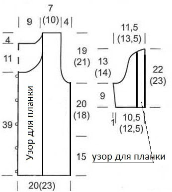 Это основной узор с горизонтальным расположением рисунка и узор для планки. Судя по выкройке, узор для планки проходи по центральной части рукавов.