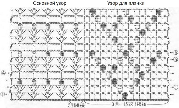 При вязании большого размера, не гонитесь за точным совпадением. Ширина планки может быть уже, чем на представленной схеме.
