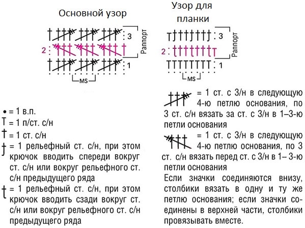 Узор для планки: вязать согласно схеме № 2