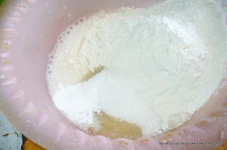 Смешайте муку, сахар, ванильный сахар и разрыхлитель. Добавьте сухие ингредиенты во взбитые яйца,