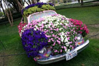 Клумбы, которые я хочу Вам показать, действительно необычные. Они очень красивые! А необычное в них то, что эти клумбы находятся не на земле, как это принято, а в старых автомобилях, лодках, каретах, телегах.