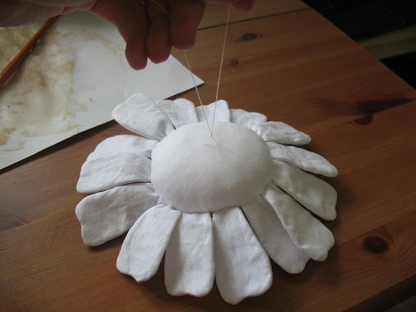 Набиваем ромашку холофайбером через оставшееся отверстие