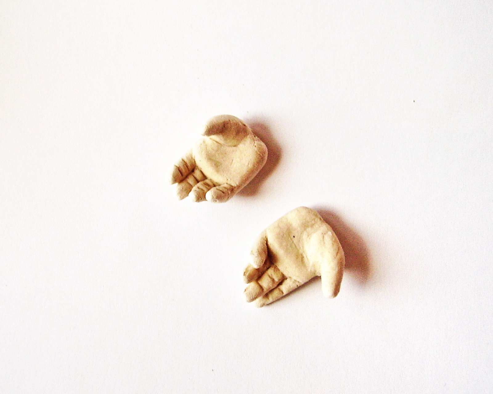 [640x512] Леплю и прикрепляю большой пальчик-морковку. Все неровности и неточности корректировать буду уже после высыхания ручки, сейчас же нужно придать пальчикам задуманное положение.